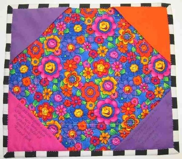 The basket block can be filled with flowers, fruit, puppies - whatever! Look thru your novelty fabrics for something fun. You could also make one for each season.