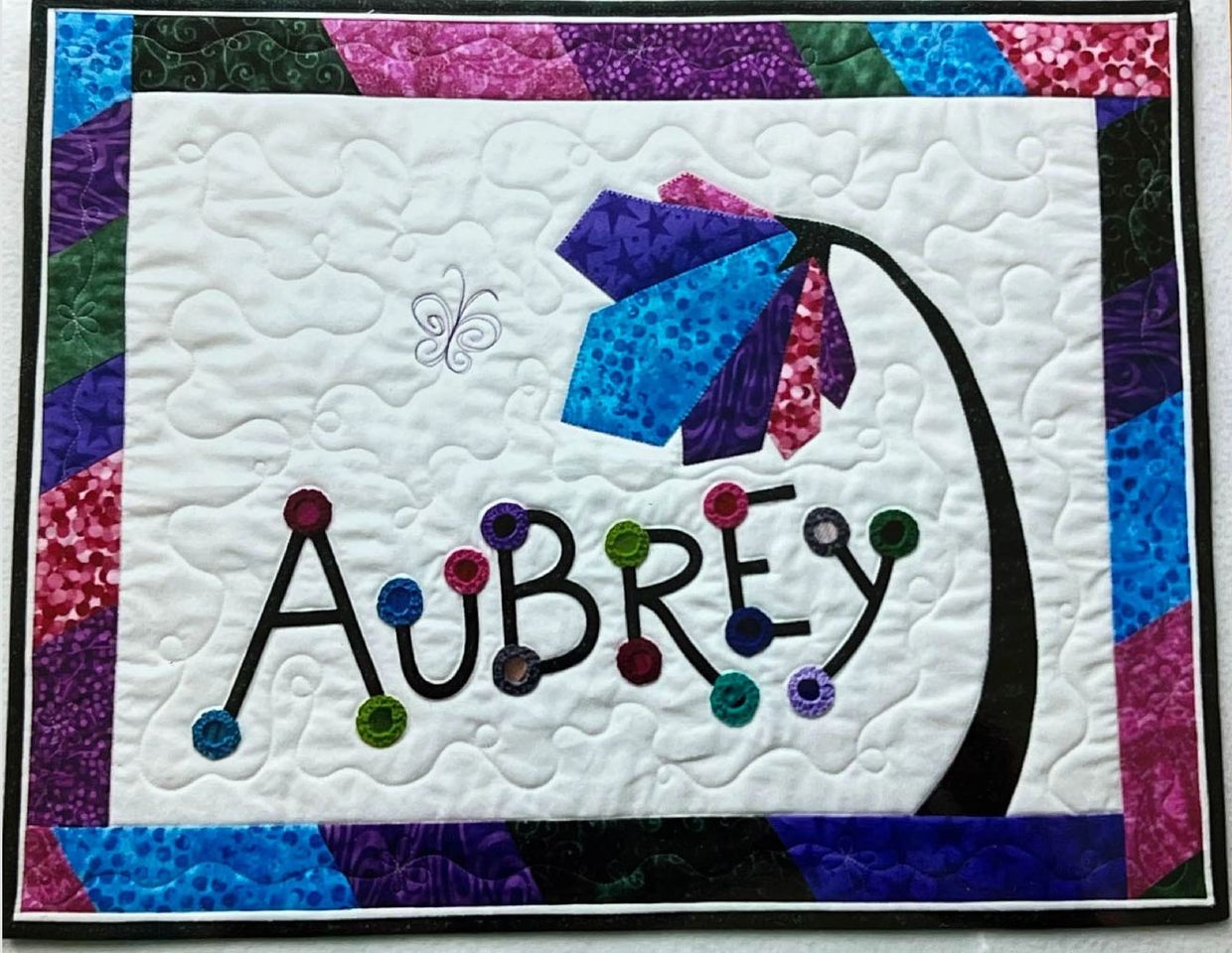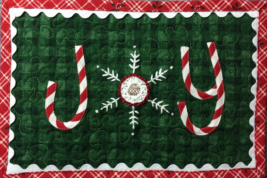 I used the free motion couching foot on my Bernina to stitch down some matching 2 mm cord in the border.