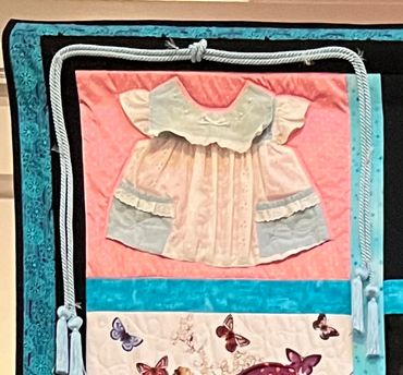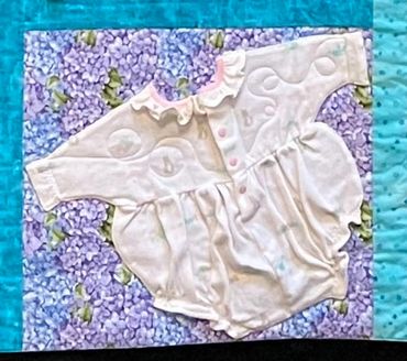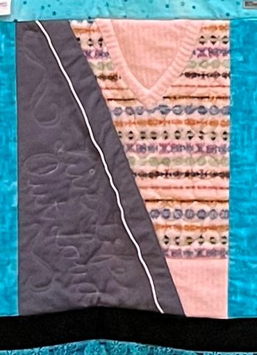 This is a very special quilt. It is a memory quilt I made for a friend, made from clothing from her daughter who died too young.